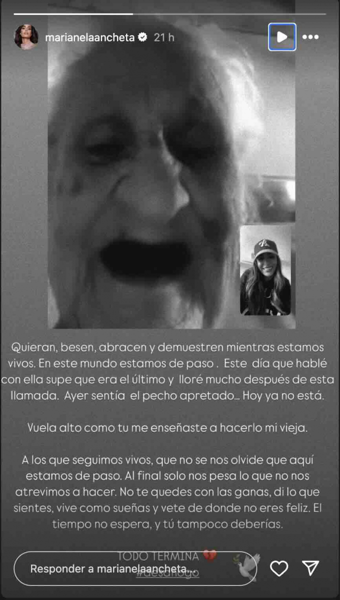 Marianela Ancheta sufre la pérdida de su «vieja» y conmueve con su despedida: «Vuela alto»