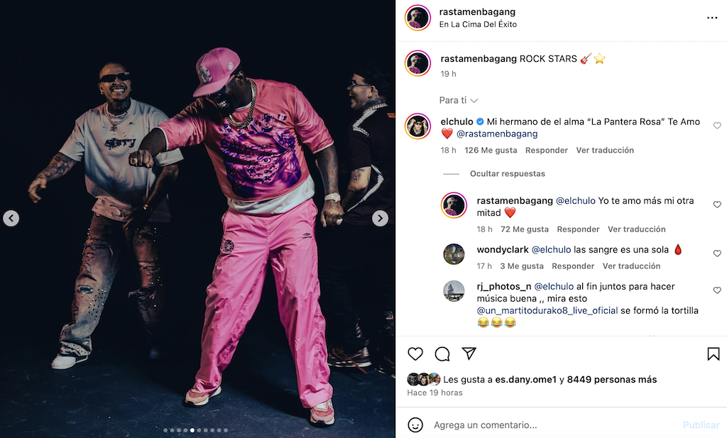 “La Pantera Rosa cachán nuevo personaje desbloqueado”, añadió El Chulo en los comentarios refiriéndose al look todo rosado que escogió El Rey de los Reparteros para esta filmación.